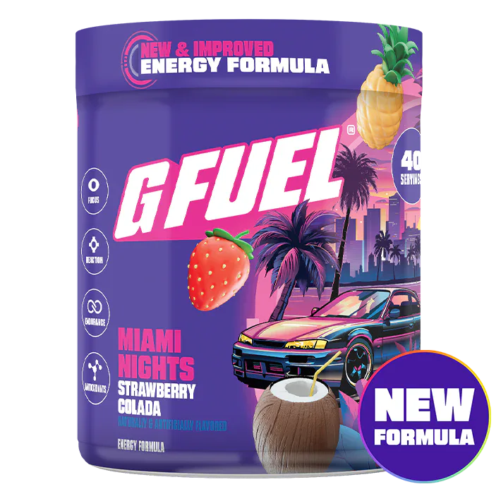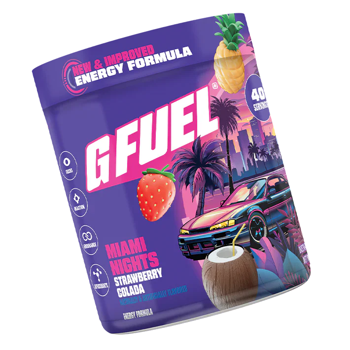 G FUEL Miami Nights 2.0 ti přinese atmosféru tropické noci v každém doušku. Nová receptura nabízí více výkonu, lepší soustředění a čistou energii bez výkyvů – ideální pro gamery, studenty i každodenní nasazení.