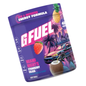 G FUEL Miami Nights 2.0 přináší osvěžující tropickou příchuť jahodové colady v nové a vylepšené receptuře. Tento práškový energetický nápoj bez cukru kombinuje přírodní kofein, nootropika, elektrolyty a vitamíny – ideální volba pro každého, kdo chce energii, soustředění a výkon bez výkyvů a bez cukru. V balení najdeš 40 porcí, které ti pomůžou zvládnout náročný den i dlouhou herní noc.